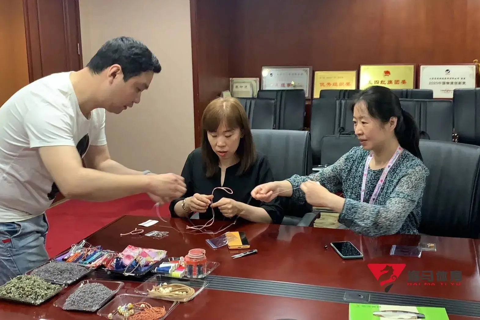 制作前,万向娱乐的手工老师首先介绍了端午的习俗以及端午节制作香囊与五彩绳的来历,让大家在活动前了解端午的民俗文化,手工老师将精心准备的有着美好寓意的五色彩绳、色彩绚丽的香包袋以及清香的艾草薰衣草,送到职员手中,携手制作香包和五彩绳。